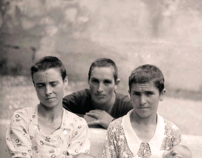Mujeres republicanas rapadas y marcadas con cruces. FUNDACIÓN PARA LA RECUPERACIÓN DE LA MEMORIA HISTÓRICA.