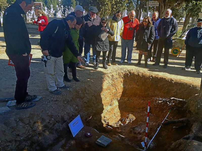 Un equipo de la asociación ha localizado al menos diez cuerpos en la fosa, que es excavada desde el pasado viernes y que ayer domingo María Sánchez, responsable de la gestión de los cementerios.