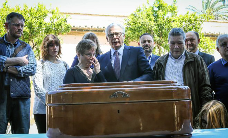 Los restos de Teófilo Alcorisa, recuperados de una fosa común, son entregados a sus familiares. JOSÉ CUÉLLAR