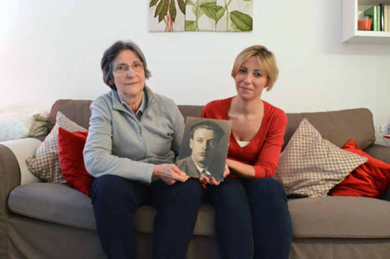 Josefa Marco y su hija Silvia Navarro con el retrato de José Antonio Marco, fusilado en 1936.