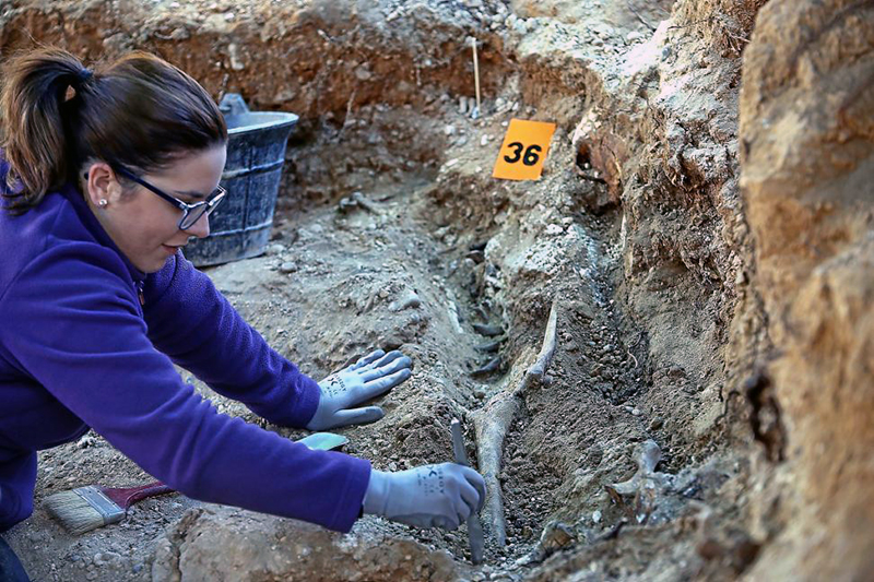 Del Olmo explicó que parte de los esqueletos, algunos amontonados, se hallaron tres cuerpos en los que se aprecian signos de disparos. «Hemos recuperado tres balas. Dos de ellas estaban en la cabeza», relató.