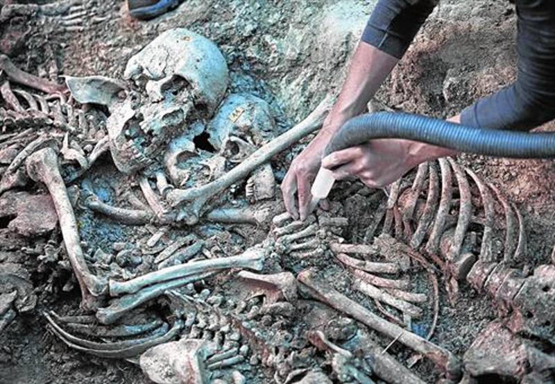 Trabajos de exhumación en una fosa común de la guerra civil, en el municipio de Gurb (Osona).