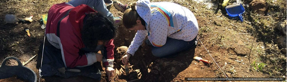 Miembros de la Universidad Autónoma de Barcelona desentierran cuerpos de combatientes republicanos ejecutados durante la Guerra Civil. (Imagen vía EPA