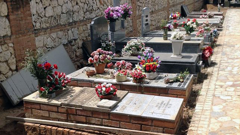 Linea de fosas colectivas en el cementerio civil de Guadalajara