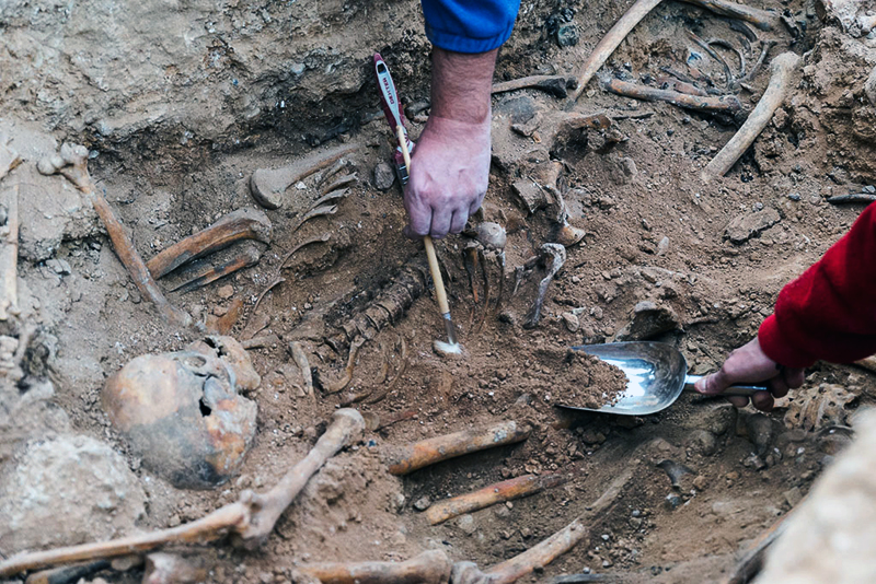 “Desgraciadamente –continúan-, los primeros sondeos resultaron negativos, pero el sondeo número 7 aportó algunos indicios que quizá podrían relacionarse con alguna de las tres fosas comunes buscadas o al menos con enterramientos que evidencian algún tipo de muerte violenta, tanto por la presencia de dos esqueletos conservados ‘in situ’ con claras evidencias óseas de autopsia craneal, como por el hallazgo de restos óseos sin conexión anatómica, pertenecientes al menos a cuatro individuos adultos, que también evidencian la realización de la autopsia craneal”.