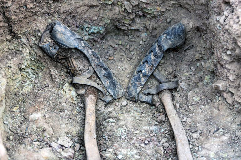 Las albarcas de una persona ejecutada en el cementerio de Pomer. / Miguel Ángel Capapé – A.R.I.C.O.